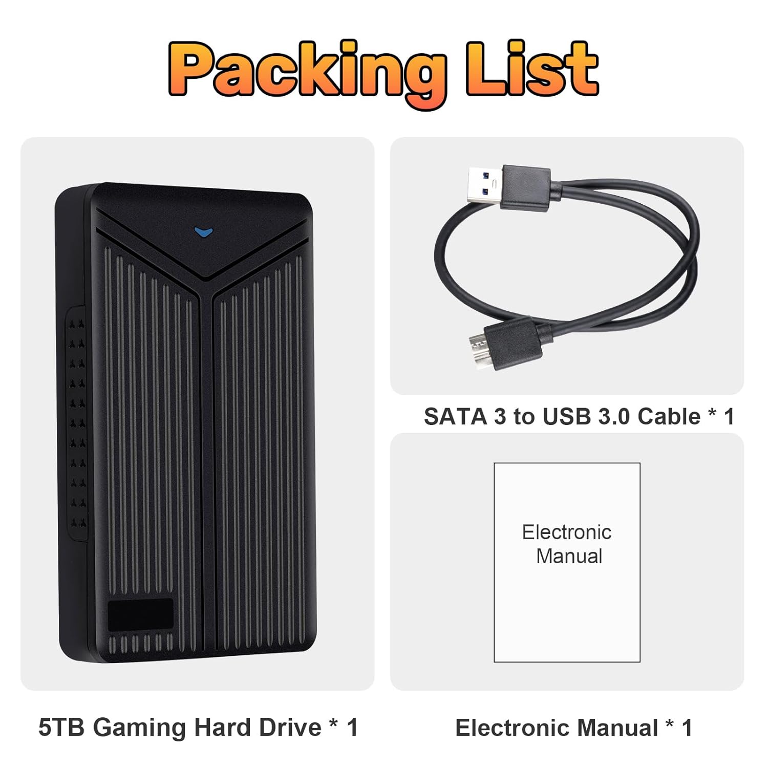 Equipped with a SATA 3 to USB 3.0 data cable, please make sure you connect the hard drive to the USB 3.0 port of your computer, which will help you get a more stable transmission speed and a smoother gaming experience
