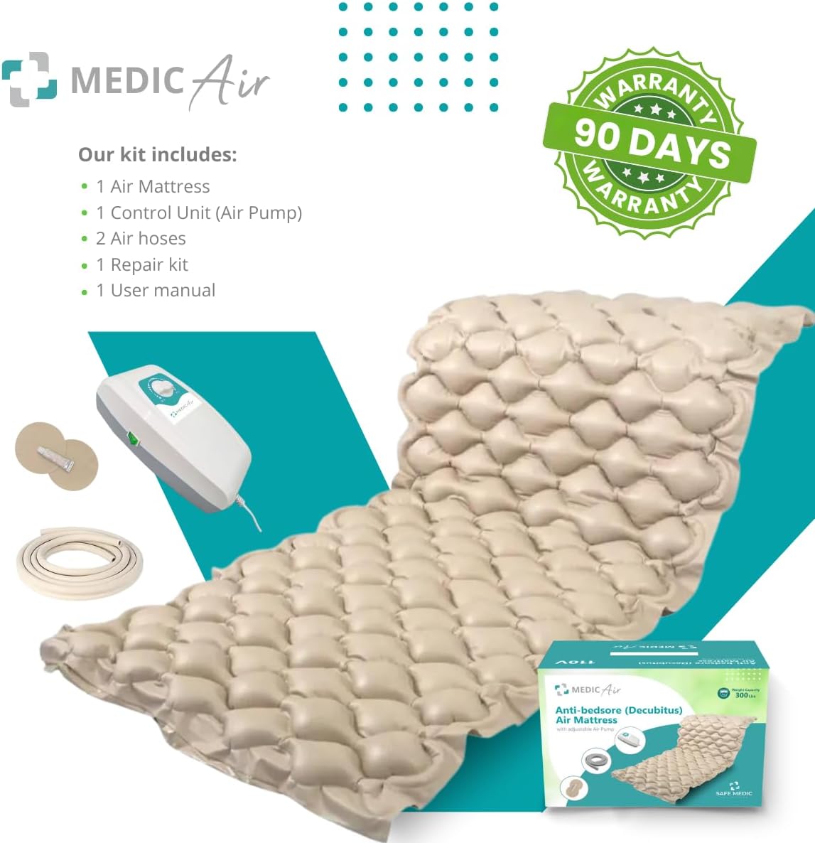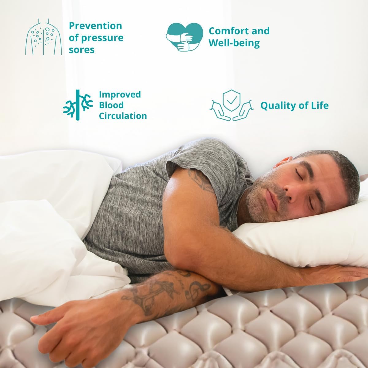 Ideal for Home Care: Perfect for home care, the colchón antiescaras para persona encamada fits any standard bed. This air bed mattress topper transforms your regular bed into a hospital bed air mattress, ensuring patients receive the best care and comfort.