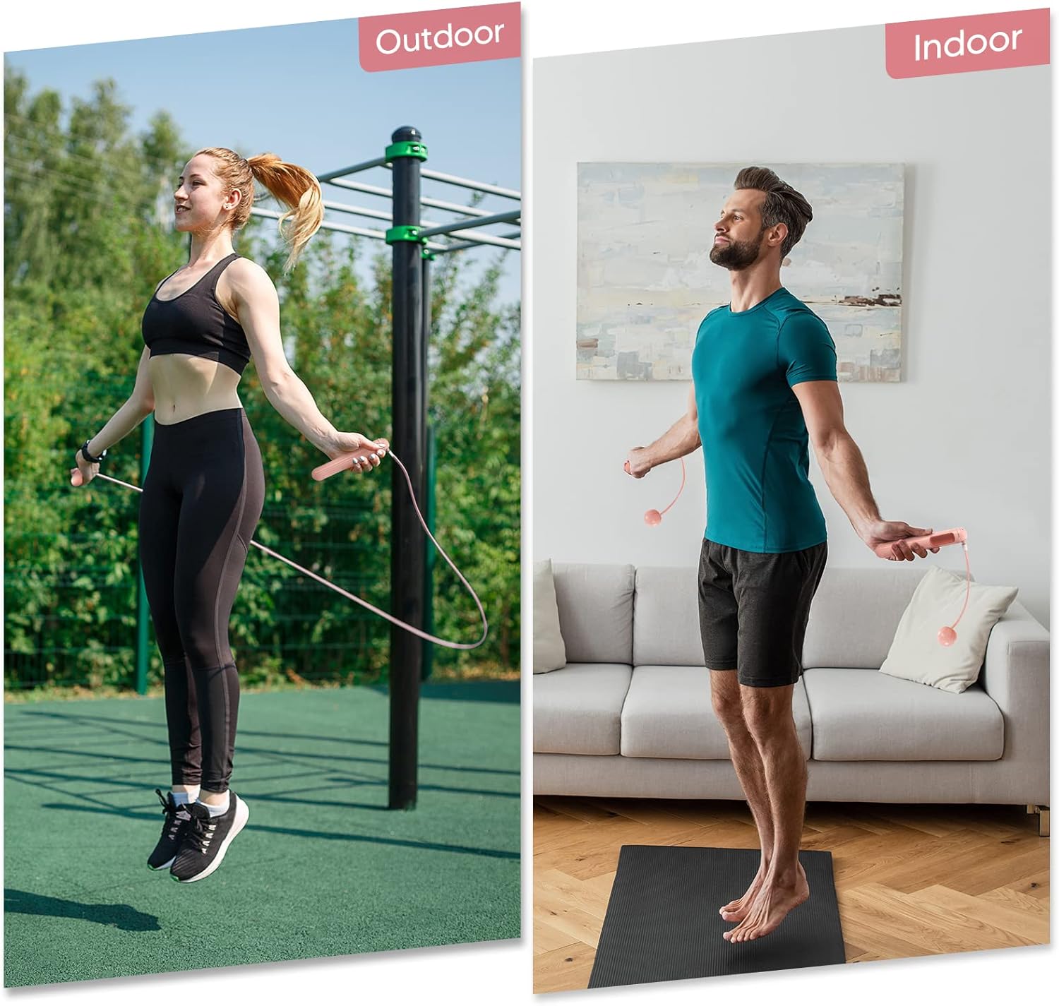 【Switchable Cordless/Rope Jump Modes】Enjoy the flexibility of choosing between cordless and jump rope modes with our adjustable jump rope. The cordless jump rope mode provides a 360-degree rotation for easy exercise, making it ideal for beginners, kids, or adults who exercise in narrow spaces. The rope mode, with its 3M/9.85ft long adjustable skipping rope for exercise, is perfect for outdoor workouts. Both modes aim to strengthen your body and help you lose weight.