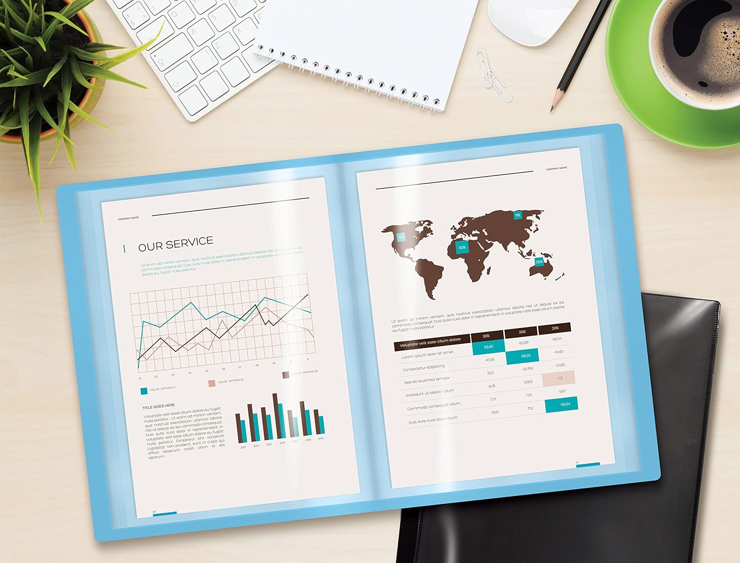 HIGH-QUALITY MATERIALS: Front and back covers made of sturdy polypropylene and 12-pocket/24-pages made of clear non-glare polypropylene to provide long-lasting, spill-proof, stain-resistant durability paper report covers can’t provide.