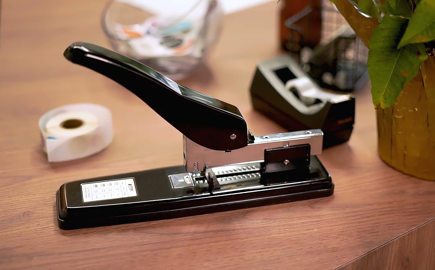 COMMERCIAL GRADE STEEL CONSTRUCTION – Not economy like the competition; jam-resistant stapling mechanism; base and handle made of high-grade steel with a glossy rust-resistant powder-coated finish