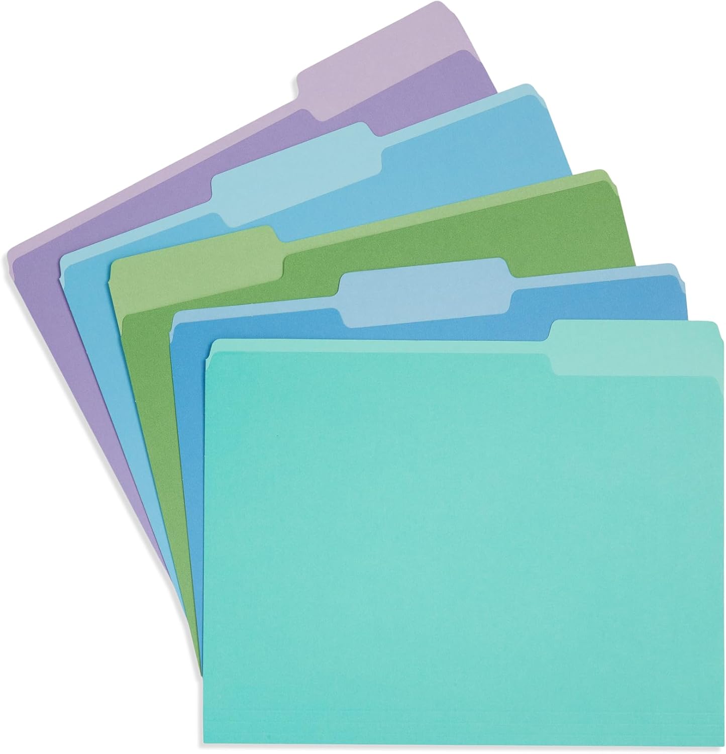 Blue Summit File Folders, Letter Size, 1/3 Tab, Two-Tone Ocean Colors – 100 Pack