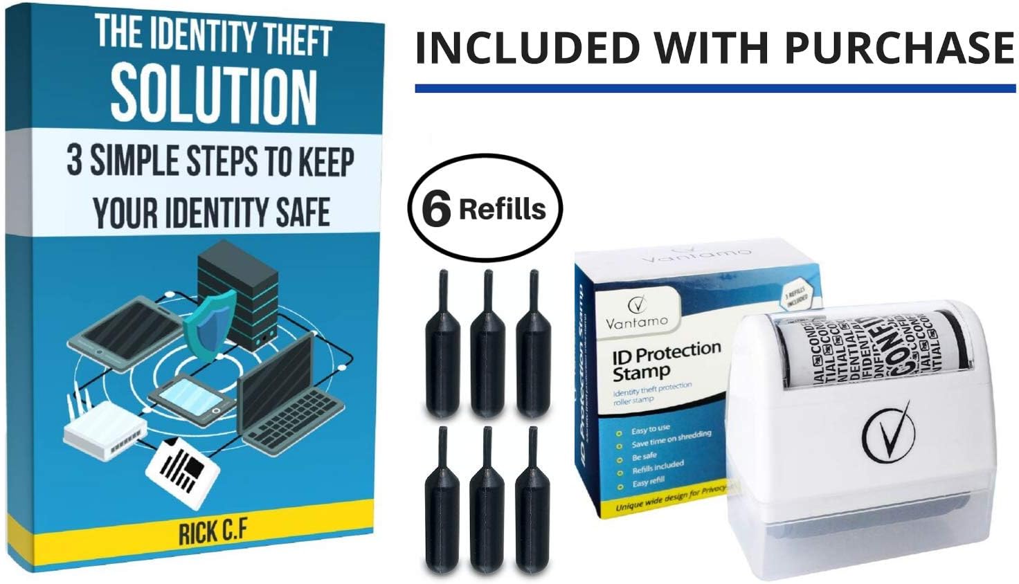 Identity Theft Protection Roller Stamps Wide Kit, Including 6-Pack Refills – Confidential Roller Stamp, Anti Theft, Privacy & Security Stamp, Designed for ID Blackout Security – Classy White