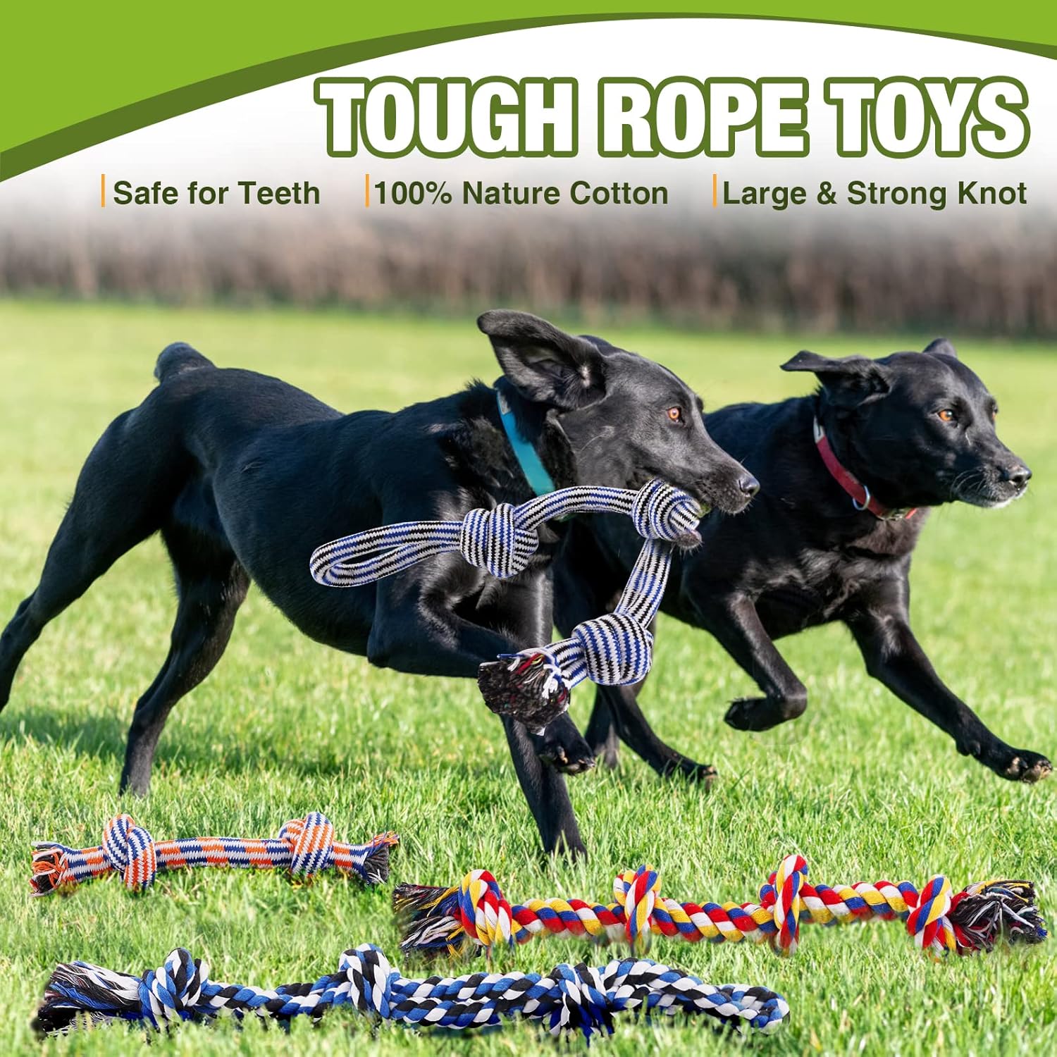 Large Dog Toys for Aggressive Chewers, 12 Pack Tough Dog Chew Toys for Large Dogs, Heavy Duty Tug of War Dog Toy, Indestructible Dog Rope Toy for Medium and Big Breed, 100% Cotton for Teeth Cleaning