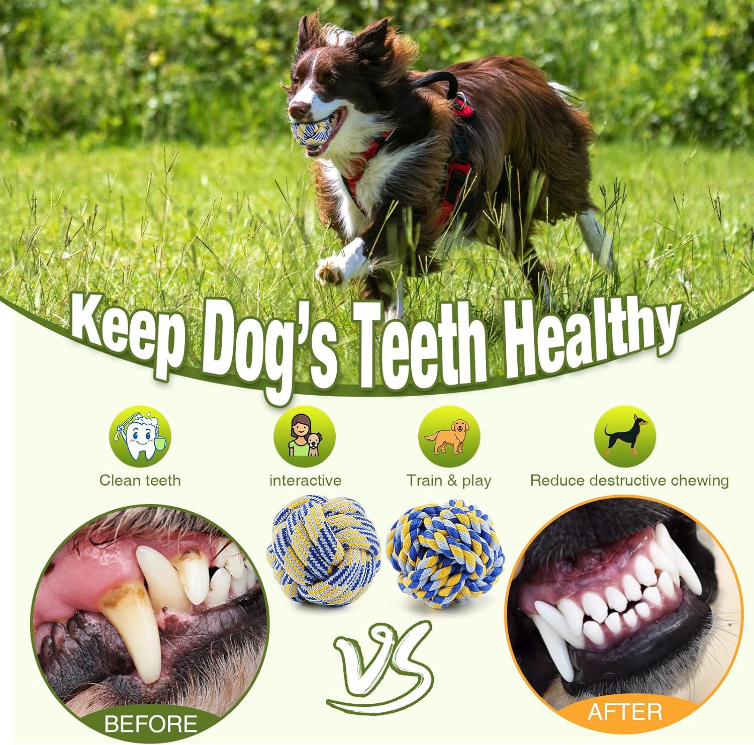 【SUPER VALUE DOG TOYS SET】Specifically designed for medium and large dogs, suitable for dogs 30-100 lbs, larger and thicker than other toys. Includes 4* 22.5″ heavy-duty knotted tug of war dog toys, 2 *11.5″ knotted dog chew toys, 2* 3.5″ rope balls toys and 4 *dog poop rolls. A wide variety of durable dog toys can not only meet your dog’s various daily needs, but also keep your dog’s mouth healthy!