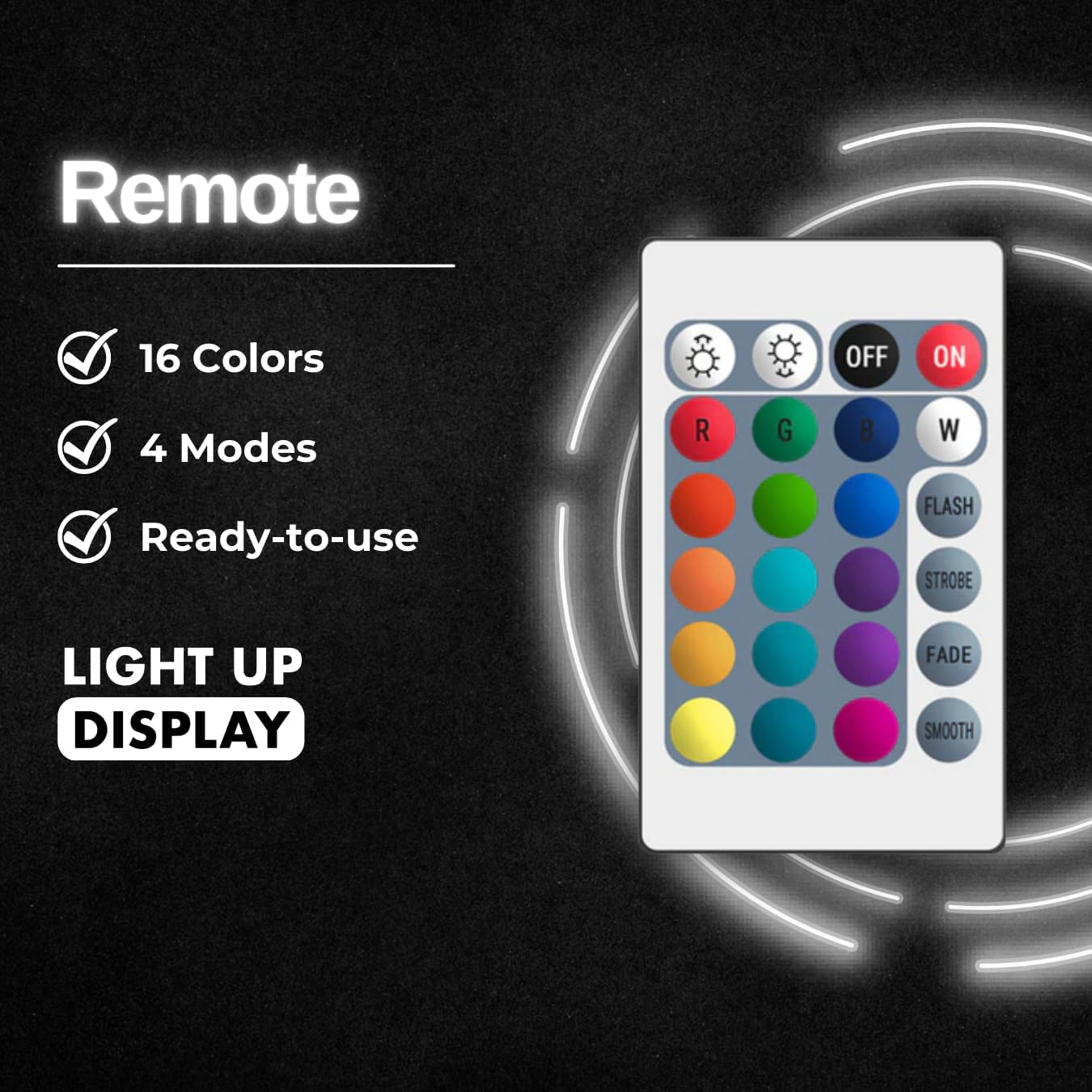 The included remote is ready to use right out of the box, featuring 16 colors and 4 modes. Our remotes are compatible with all our stands.