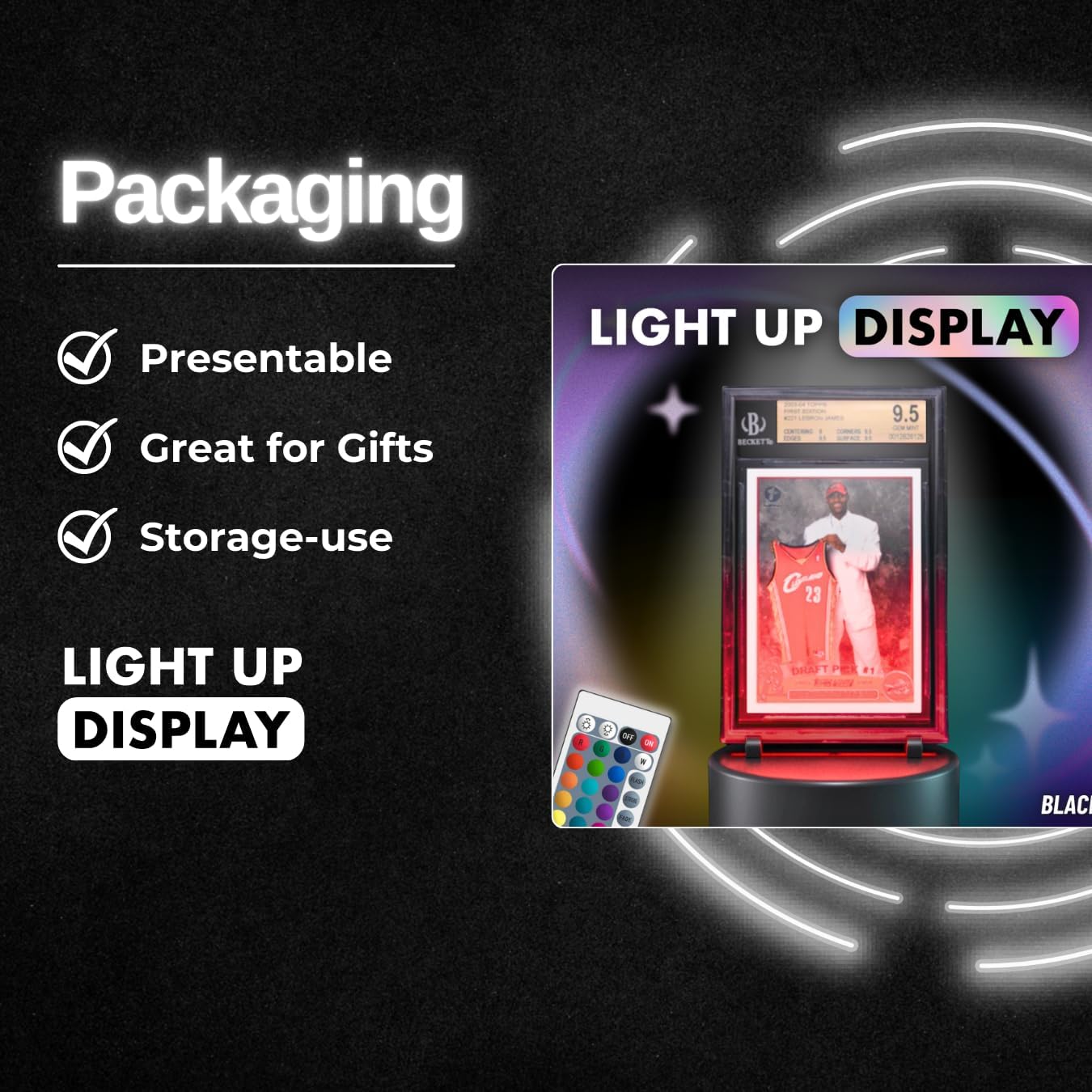 Light Up Display Sports Card LED Stand for Graded Slabs, One-Touches, & Top Loaders – PSA, BGS, TCG – Color Changing Remote – Great Gift for Collectors