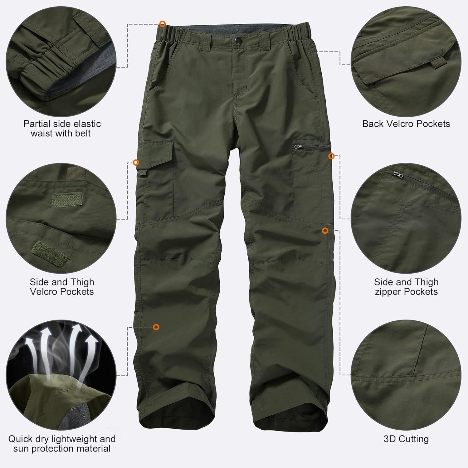 Mens Hiking Pants Quick Dry UPF 50 Travel Fishing Safari Cargo Pants Boy Scout Pants