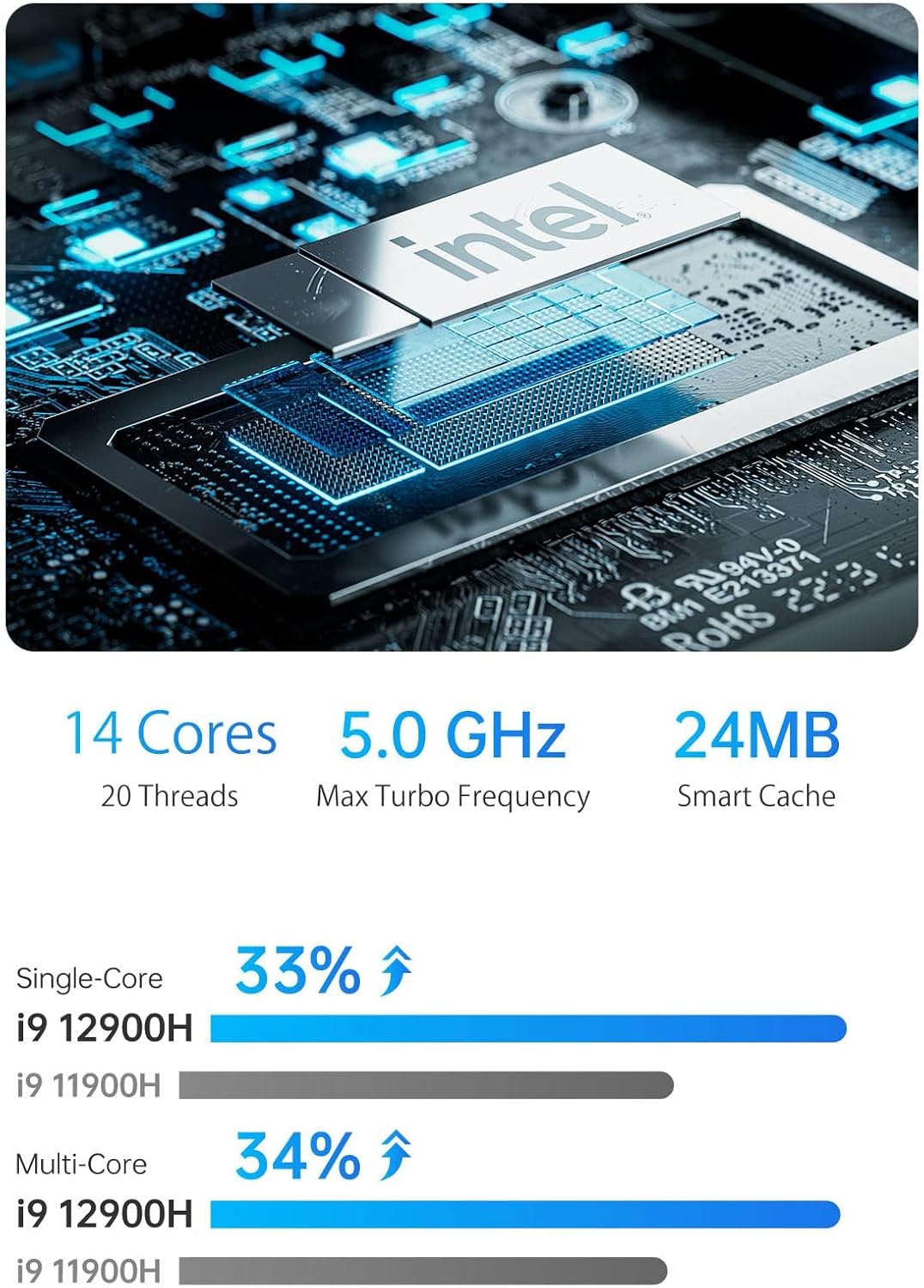 【Intel i9 12900H Mini PC】MINISFORUM NAD9 Mini PC with 12th generation Intel Core i9 12900H processor (14 cores/20 threads plus 24 MB cache, up to 5.0 GHz) and Intel Iris Xe graphics suitable (graphics frequency up to 1.45 GHz). Get ready for ultimate computing power and an immersive gaming experience.