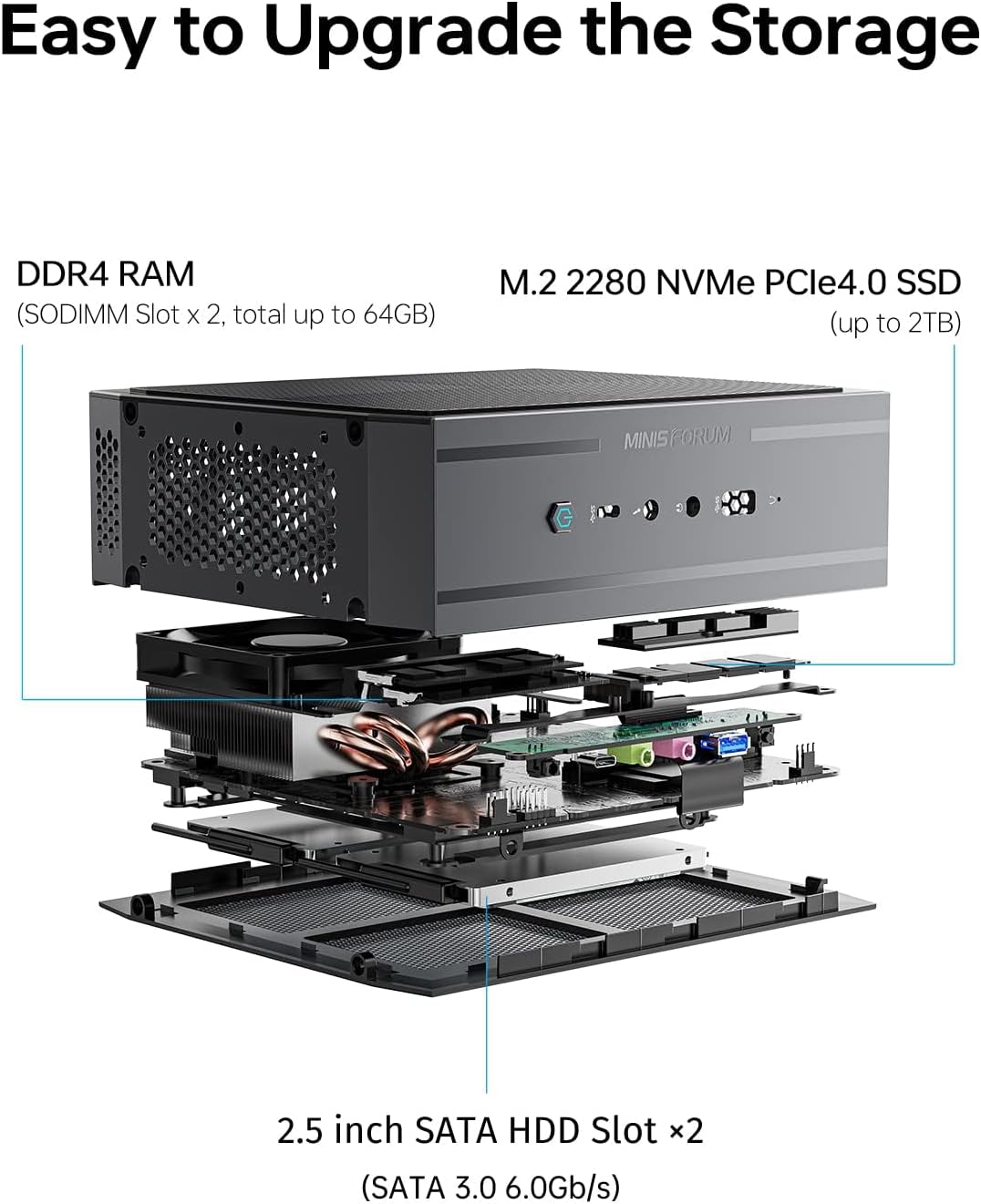 【Super Memory and Expansion】NAD9 Mini Computers with DDR4 32GB Dual Channel Memory (SODIMM Slots × 2, up to 64GB), M.2 2280 1TB NVMe PCIe4.0 SSD (up to 2TB). Apart from these configurations, it has two 2.5-inch SATA HDD slots (SATA 3.0 6.0Gb/s). You can easily expand the storage to meet your additional needs.