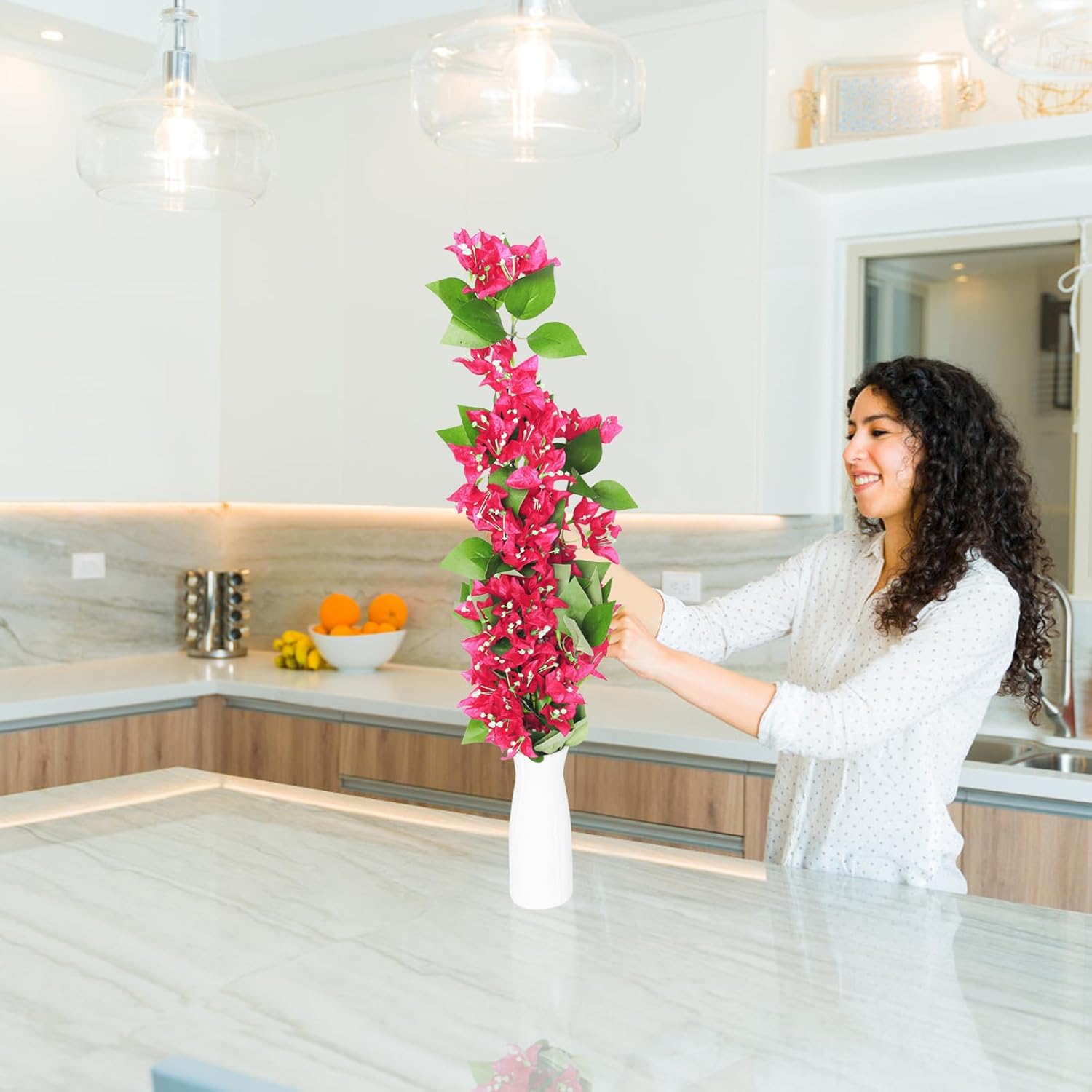 Artificial bougainvillea vine looks realistic and lifelike ,Full and soft petals,Natural-looking.It is Easily cut, bend or straighten stems for all sorts of arrangements.You can also remove the leaves or flowers for even more creative decorations.