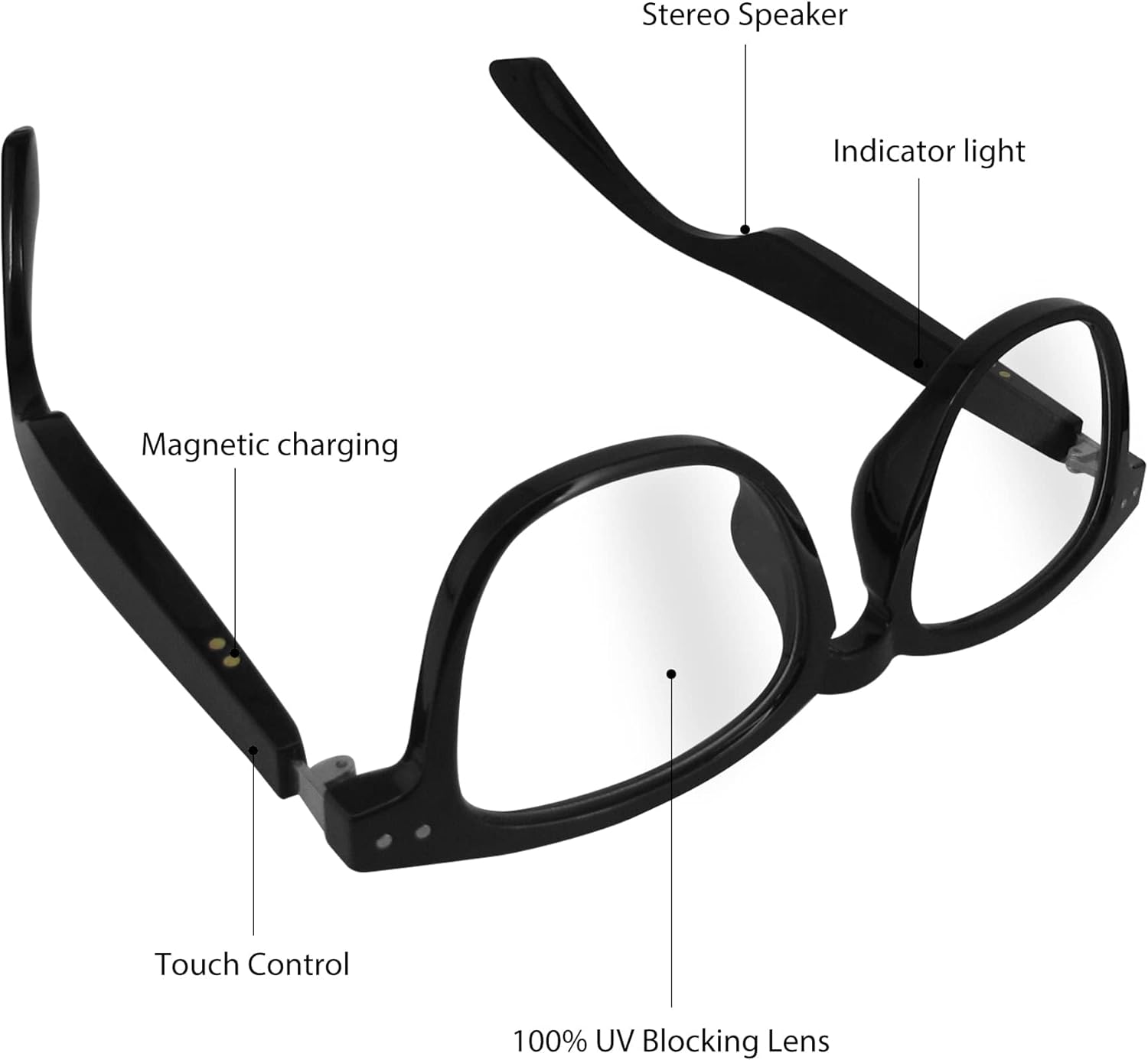 Dual Stereo Speaker & Open-Ear Sound Experience ▶ Our Smart Listening Glasses are designed with an open-ear speaker, let you say goodbye to the discomfort of wearing headphones for a long time, immersive sound to the space around your ears.
