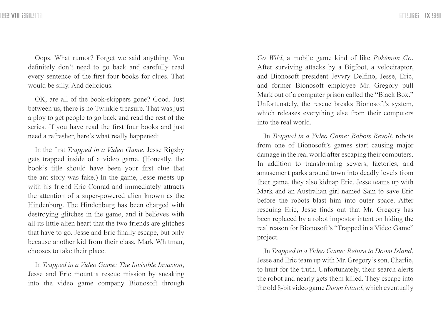 Kids who love video games will love this fifth and final installment of the 5-book series about 12-year old Jesse Rigsby and the wild adventures he encounters inside different video games.