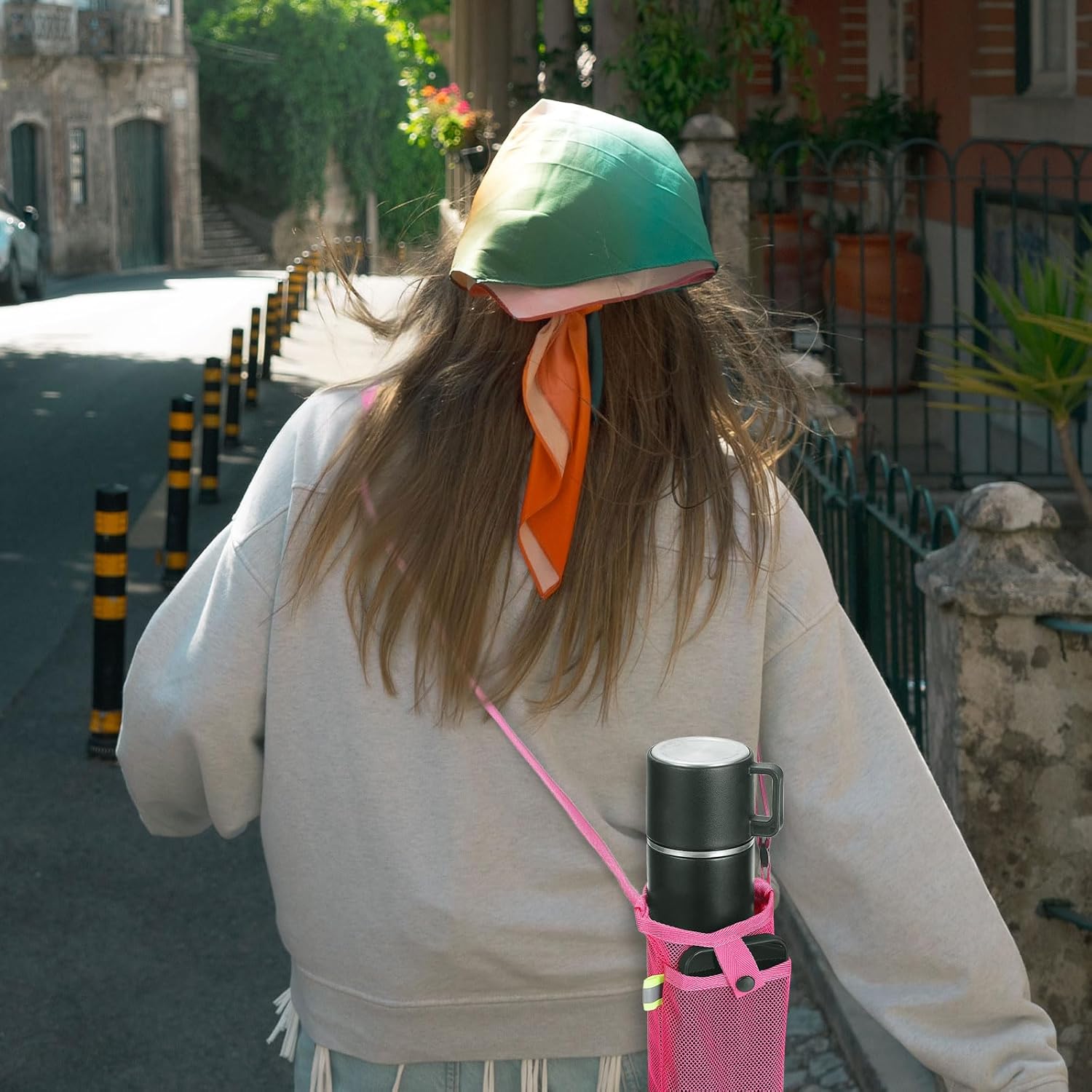 [Feature] The water bottle carrier has a double-pocket design. In addition to water bottles, you can also hold mobile phones or keys. It has an adjustable shoulder strap to fit people of different heights and body types, so you can carry this water bottle holder crossbody to free your hands.