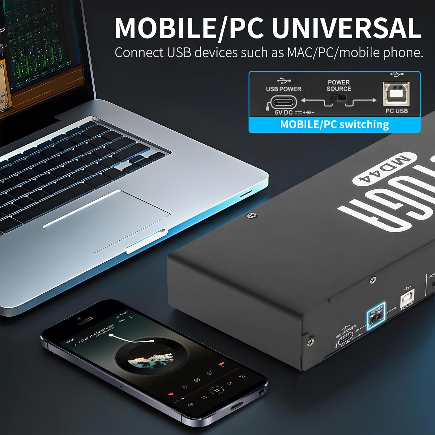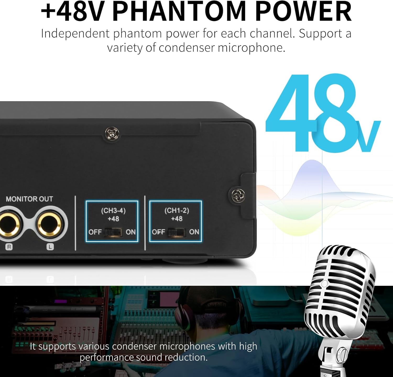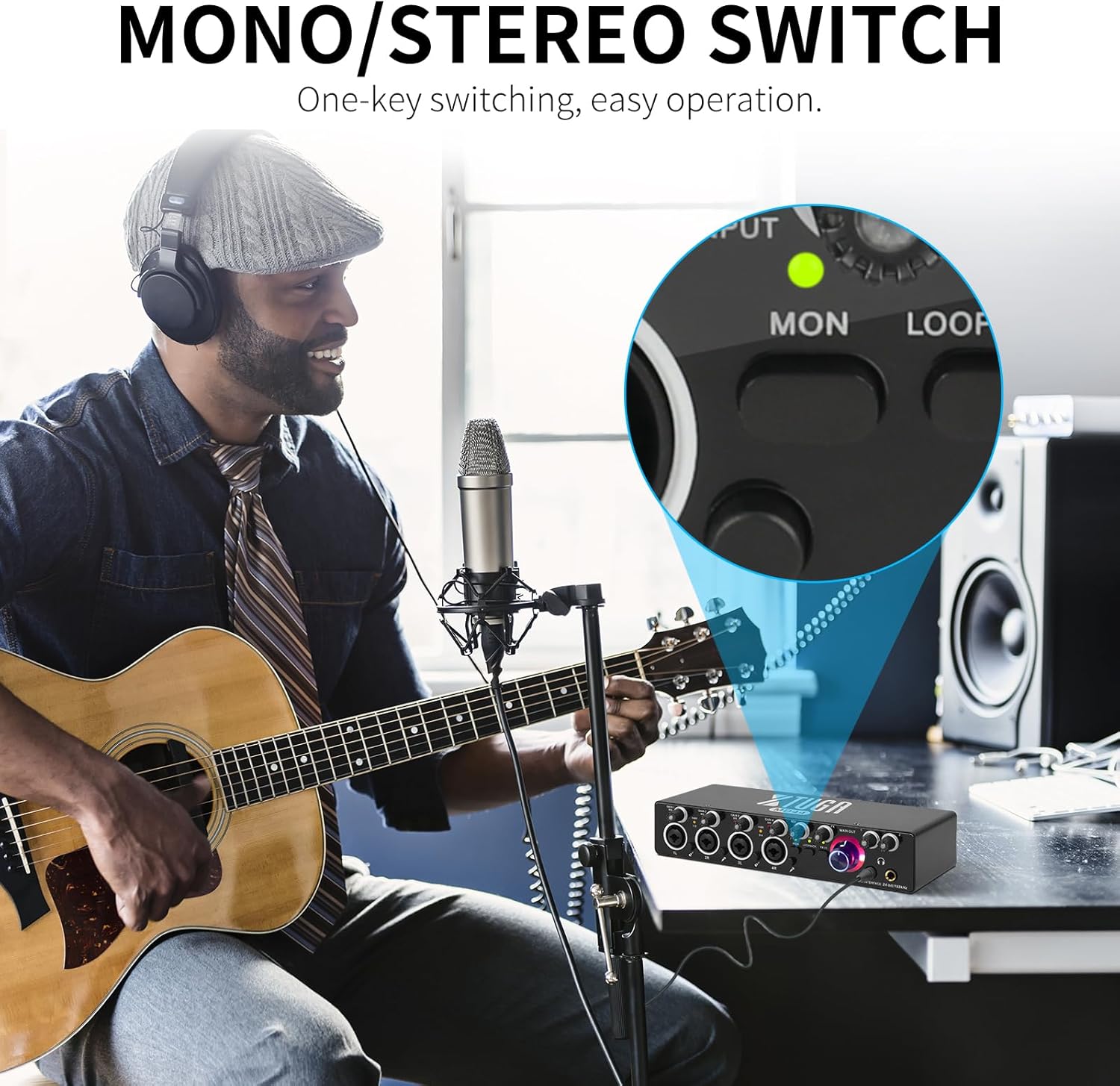 XTUGA Stereo Audio Interface with Mic Preamps with 48V Phantom Power 24-bit 192kHz for Music Computer Recording MD44
